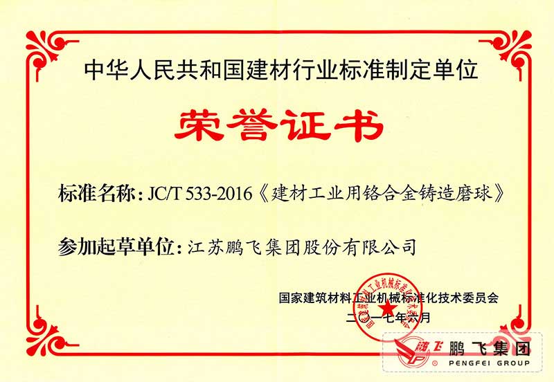 (2017年6月21)铬合金铸造球磨行标起草证书