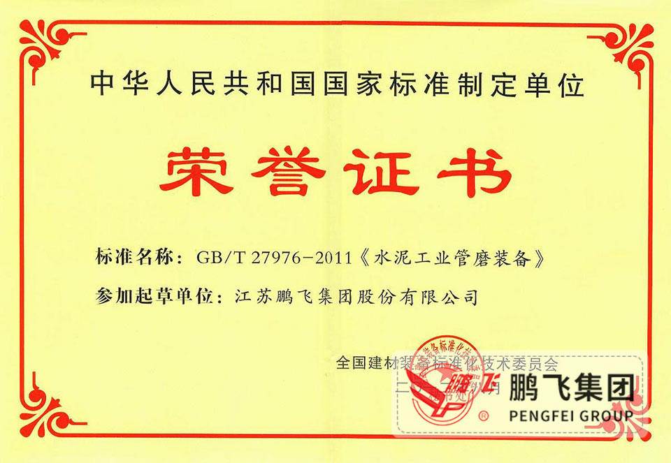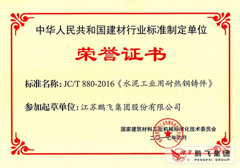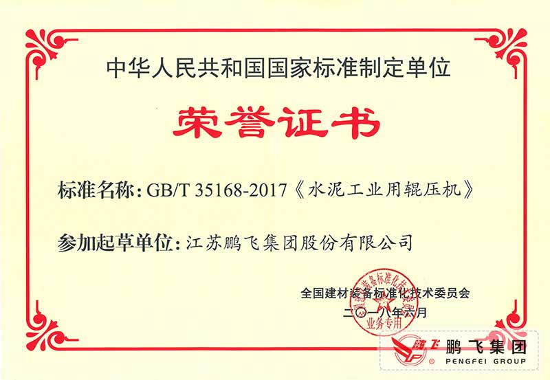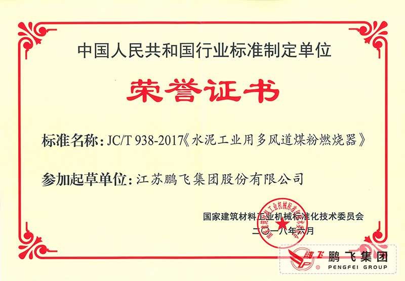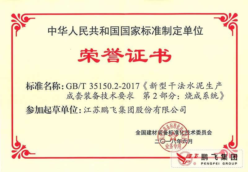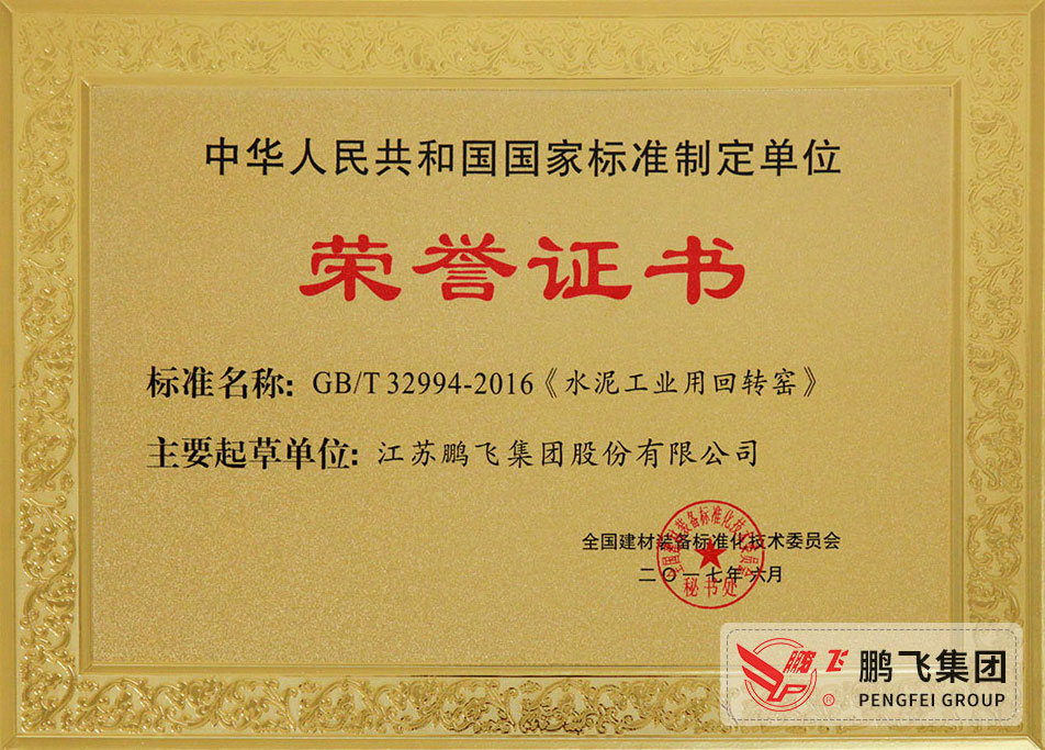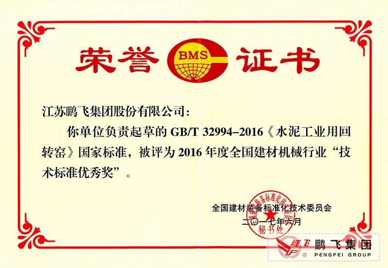 (2017年6月21)回转窑国标起草证书技术标准优秀奖