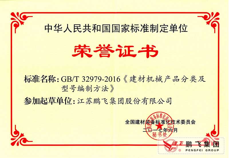 (2017年6月21)建材机械产品分类及型号编制方法国标起草证书