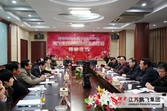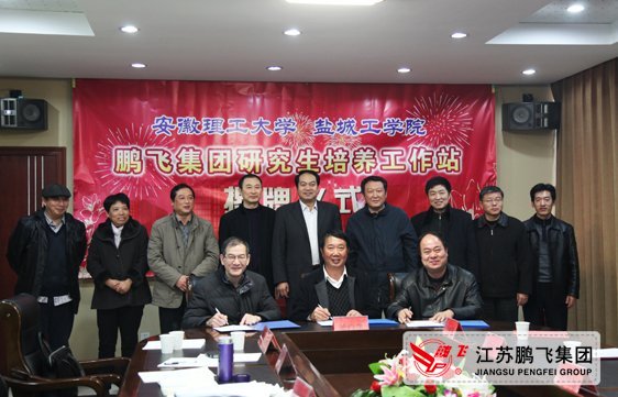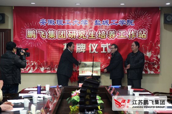 12月10日,由鹏飞集团联合安徽理工大学、盐城工学院创建的研究生培养工作站在江苏鹏飞集团公司举行揭牌仪式,江苏鹏飞集团副总经理周延标介绍了与安徽理工大学、盐城工学校产学研合作情况,盐城工学院邵荣副校长、安徽理工大学王其东副校长对研究生培养工作站的成立提出新的工作要求,大公镇政府、海安县科技局领导做了重要讲话,盐城工学院邵荣副校长、王其东副校长、鹏飞集团副总经理周延标在三方合作协议上签字,三方共同为鹏飞集团研究生工作站揭牌,会议结束后,大家参观了江苏鹏飞节能环保产业技术研究院和鹏飞集团全面建成投产后的北厂新区。