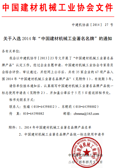 江苏鹏飞集团荣获中国建材机械工业著名商标