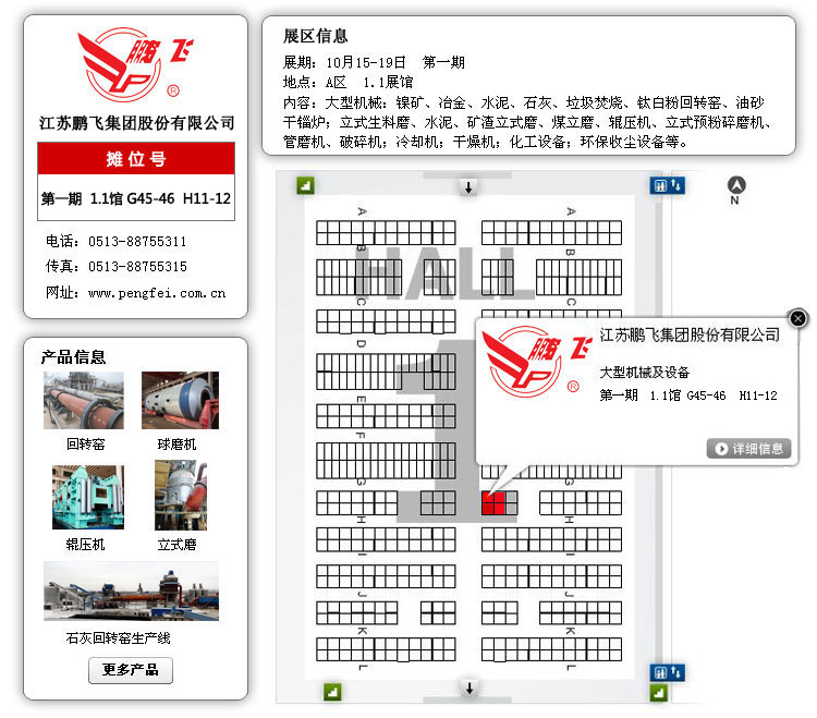 江苏鹏飞集团在第118届广交会上精心布置展位,印发所产各类成套设备的介绍手册,并运用全景水泥生产线模型现场演示,委派具有多年工作经验的销售、技术、售后等专业工作人员为顾客详细介绍新产品、新技术,全面分析解答各类设备从购买到投产使用以及售后服务等每个环节的问题,为您排疑解难,与您达成共识。同时,也希望能和更多的国内外公司加强联系,互相合作,为客户提供更加完美的产品。