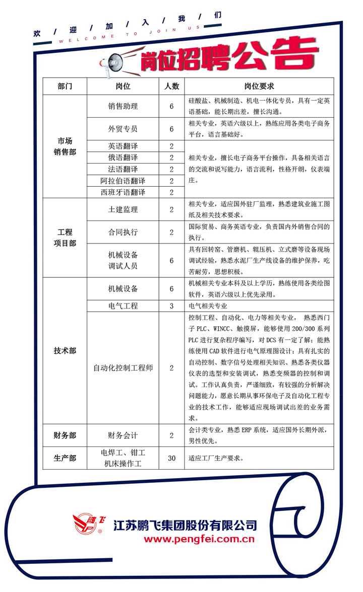 个人简历标明“院校+姓名+岗位”发至:pf@pengfei.com.cn