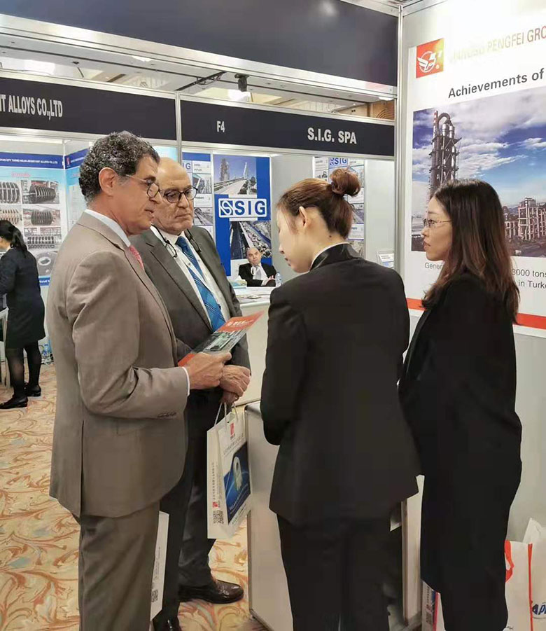 由阿拉伯水泥及建材联盟主办的第24届阿拉伯国际水泥展(AICCE 24)于2019年11月24日在埃及开罗城市之星酒店(InterContinental CairoCitystars)举行。来自欧美及亚非等30多个国家和地区的120多家知名水泥生产商、水泥设备和技术供应商、工程承包商参加本次展会。此次鹏飞集团再度亮相阿拉伯国际水泥展,标志着公司对阿拉伯地区业务的重视。