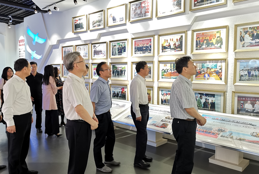 江苏鹏飞集团股份有限公司董事长王家安带领调研组一行,参观了生产车间和展厅,向调研组介绍企业国内外发展定位及在“一带一路”沿线国家落地项目的概况,向调研组介绍企业现阶段发展状况、海外项目运行情况及企业未来发展愿景。