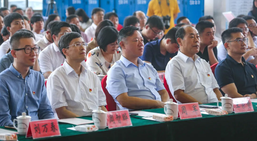 南通市政协专职常委、一级调研员,南通市委党史学习教育第八巡回指导组组长李振冲,南通市纪委监委派驻市交通运输局纪检监察组组长、南通市委党史学习教育第八巡回指导组副组长王鹏,国网南通供电公司副总经理李秋实,海安市委常委、宣传部部长王荣贵,南通市委办公室四级调研员周军,南通市纪委监委派驻市交通局纪检监察组副组长江金荷,南通市委宣传部新闻发布管理处副处长周智晔,海安市委组织部副部长、“两新”工委书记吴兰,海安市委宣传部常务副部长刘万春,海安市委宣传部副部长、市新闻出版局局长陈琳,海安市发展和改革委员会主任周小军,国网海安市供电公司总经理唐玉婷,江苏鹏飞集团党委书记、董事长王家安,大公镇党委书记金山存,大公镇党委副书记、镇长鲁竞出席活动。海安市委组织部、宣传部、发改委、财政局、行政审批局、科技局、商务局、生态环境局、自然资源和规划局、住建局、建管局、国网海安市供电公司相关负责人,开发区、高新区分管党建负责人,各区镇、街道组织委员、宣传委员,大公镇全体党政负责人,大公镇各局办(中心)负责人、正副局长,工青妇负责人,各村支书,鹏飞项目服务工作专班全体人员,供电公司员工代表,鹏飞集团员工代表等参加活动。