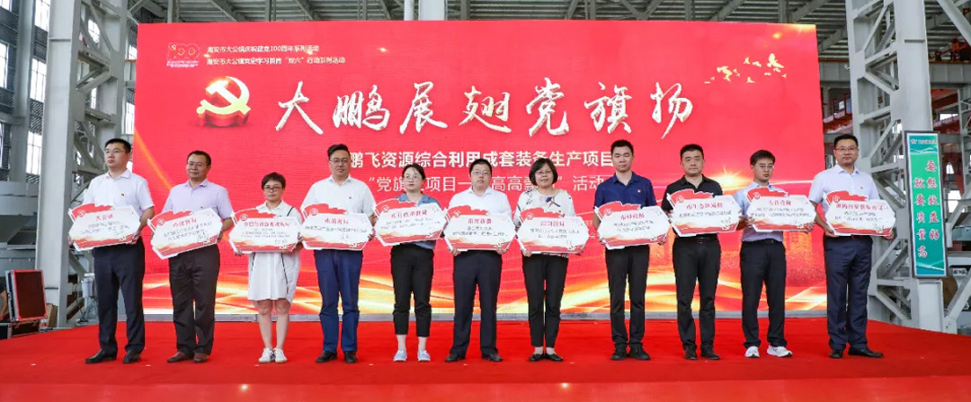 “今天活动现场的‘鹏飞资源综合利用成套装备生产项目’是2021年江苏省重大项目,南通市‘党旗在项目一线高高飘扬’活动第一批启动项目。为了着力提升服务效能,健全重大项目服务机制,大公镇牵头组织成立项目临时党支部、项目服务专班,一刻不停推项目,让党旗飘扬在项目一线;一着不让抓发展,让党员冲锋在项目一线;一以贯之优环境,让服务下沉到项目一线,着力办实事、解难题,为推进重大项目建设提供有力支撑和坚实保障。”大公镇党委书记金山存说。