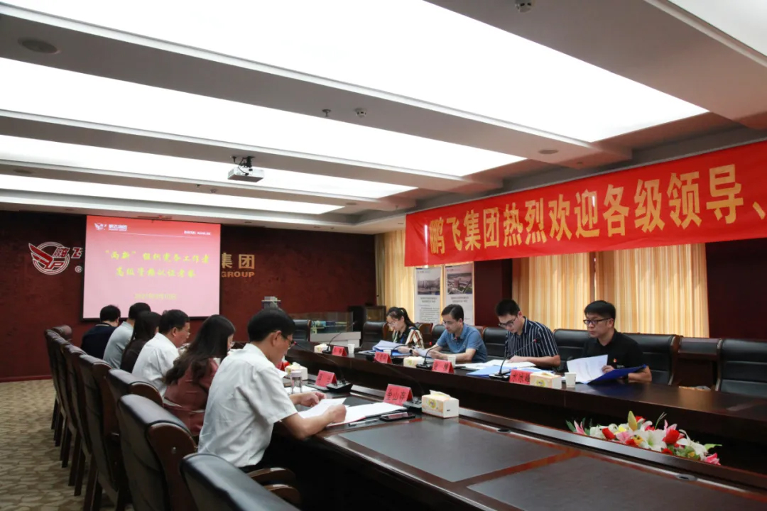 鹏飞集团党委书记王家安汇报了企业党建工作及基本经营情况,并就发挥“两新”党组织和党员的关键作用,推动政治优势、组织优势转化为企业项目建设、产品研发、市场开拓等方面进行了分析。