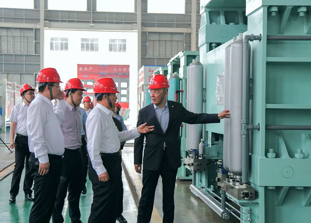 参观中,王家安董事长向阎会长一行介绍了公司的发展历程、现阶段的装备制造能力、近年来取得的重大成果,以及今后的主要目标和任务。