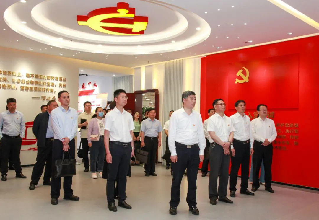 随后,一行人参观了鹏飞集团党建展厅,详细了解了鹏飞集团“鹏心向党 窑望未来”党建品牌内涵。近年来,鹏飞集团以“红翼”党建工作法为依托,积极引导企业党员不忘初心、矢志奋斗,先后获评南通市先进基层党组织、南通市党建工作示范点。