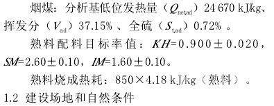 该项目采用石灰石、板岩、粉煤灰和铁粉四组分原料配料,它们的品质指标符合预分解窑熟料生产的控制要求。