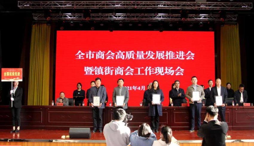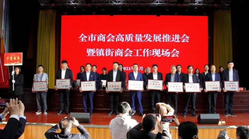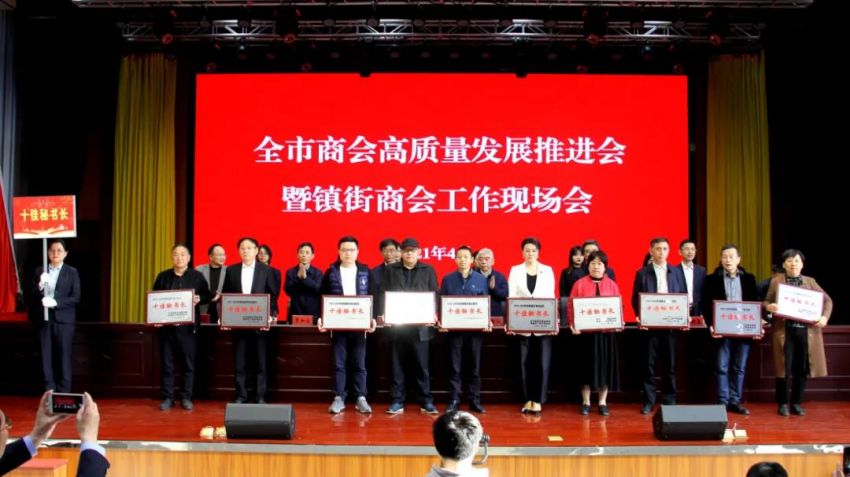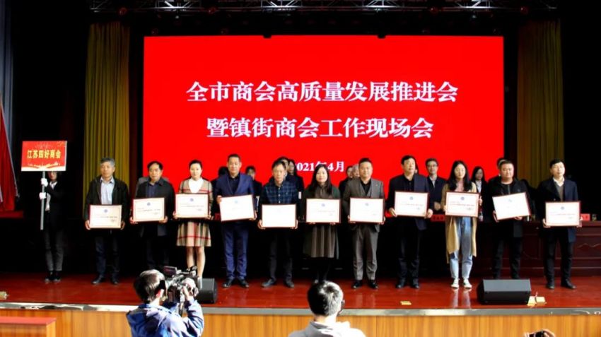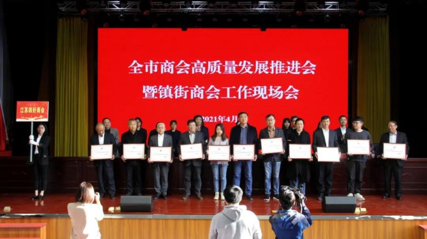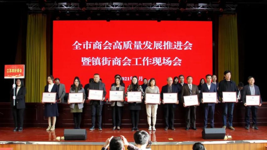 为学习贯彻中央、省商会工作会议精神,加快推进全市商会基层组织建设,推进商会组织高质量发展。4月19日下午,南通市工商联(总商会)在我镇隆重召开“全市商会高质量发展推进会暨镇街商会工作现场会”。南通市政府副市长、一级巡视员赵闻斌,江苏省工商联党组成员、副主席李晓林,南通市委统战部副部长、市工商联党组书记王虎,海安市委常委、组织部长、统战部长张明星,南通市工商联党组成员、副主席罗加宏,海安市政协副主席、工商联主席、总商会会长蔡祝平,大公镇党委书记金山存,党委副书记、镇长鲁竞等参加活动。出席会议的还有省工商联、市民政局相关处室领导,各县(市)区委统战部分管副部长、工商联主要负责人及分管领导,全市各镇街(园区)统战委员,商会会长代表,受表彰的全国抗疫先进典型,全国、省、市四好商会,荣获全市商会十大工作品牌的商会,商会十佳会长,十佳秘书长,部分市直商(协)会主要负责人,以及市工商联相关部室人员共计250余人。