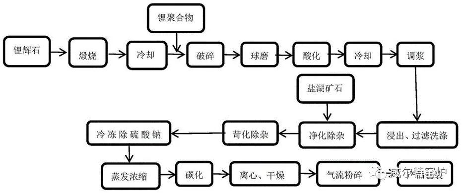 1、碳酸锂生产工艺流程-硫酸法生产工艺流程介绍: