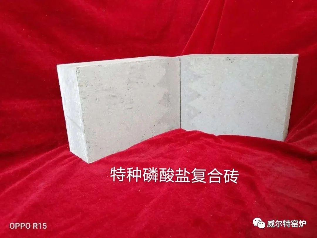 复合改性磷酸盐砖内衬采用干砌,环砌法(或者湿砌筑法),砖与砖之间的放射缝中夹入薄钢板δ=1mm,每2环加1mm厚纸板膨胀缝,砖环应相互平行并同轴向中心线垂直,由于镁铝尖晶石砖怕水,故加工镁铝尖晶石砖时采用特殊锯片进行干切;靠窑体砌高铝砖时,高铝砖下部凹槽处放置硅酸铝纤维毡,起到降低窑温的作用,高铝砖采用湿砌环砌法,砌筑时砖应紧靠窑体,其间缝隙不应大于1mm 。