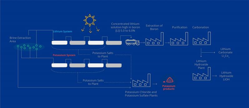 图:SQM在智利Atacama盐湖的盐田循环系统