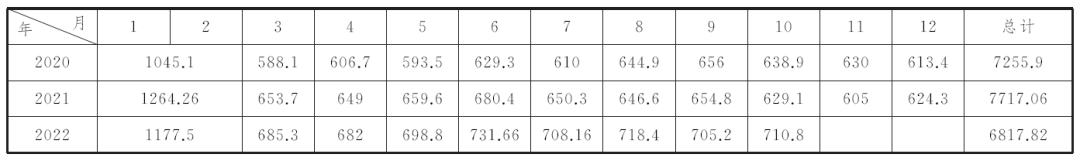 表4 2020~2022年氧化铝产量统计表