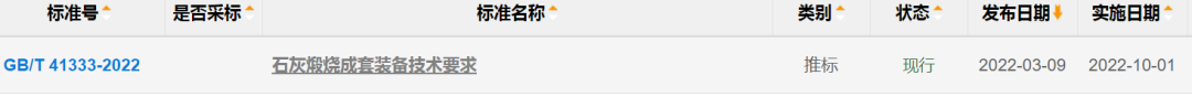 石灰行业《石灰煅烧成套装备技术要求》(GB/T 41333-2022)最新标准于2022年3月9日正式发布,并将于2022年10月1日起实施。
