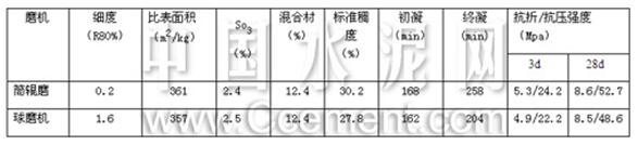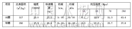 表中数据说明:在凝结时间、标准稠度需水量基本相同的前提下,OK磨磨制的水泥28d抗压强度比球磨水泥高出15%,同时,水泥的早期强度也高,可进一步增加混合材掺量,降低水泥生产成本。