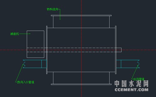 方案二:在锁风阀轴向位置安装导风管,将窑尾热风通入锁风阀,增加内部温度,防止粘料,后从另一侧通入磨机中,由于本公司安装空间有限,以及成本等因素考虑,后分析认为这种方法并不适用与本公司。(如图一)