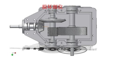 第二部分:减速机损坏维修以及后期防护。本公司四个锁风阀的减速机都采用弗兰德的垂直轴减速机,在锁风阀承受较大力矩的时候,减速机内部各级齿轮也相应的承受较大的力,同时由于该种减速机二级传动轴两侧采用推力调心滚子轴承,而且轴承端盖没有进行螺栓紧固,只是做了密封处理,因此在承受较大力时,也就是在锁风阀卡停的情况下会经常出现将两侧轴承端盖顶开的情况,浪费润滑油,增加生产风险(如图三)。