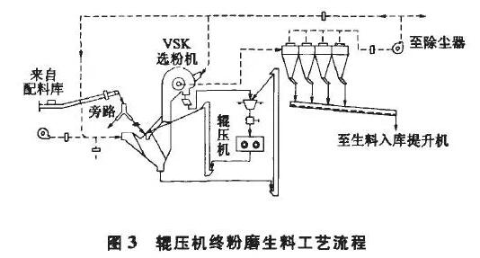 辊压机终粉磨生料工艺流程图见图3.