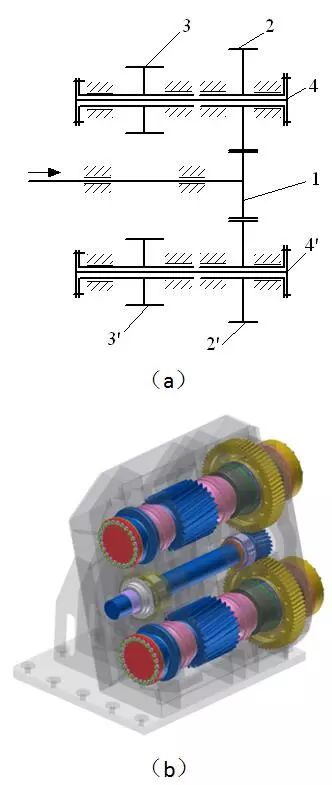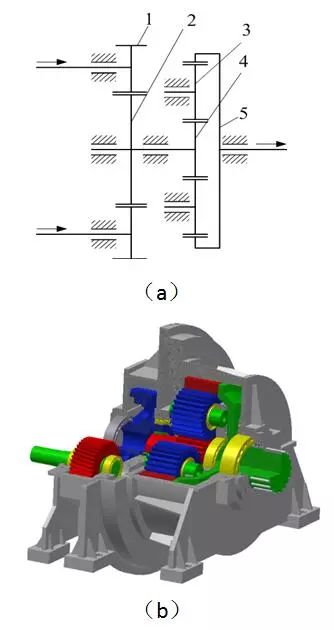 (2) 多点啮合齿轮箱采用平行轴功率分流传动方式,结构简单,加工方便;