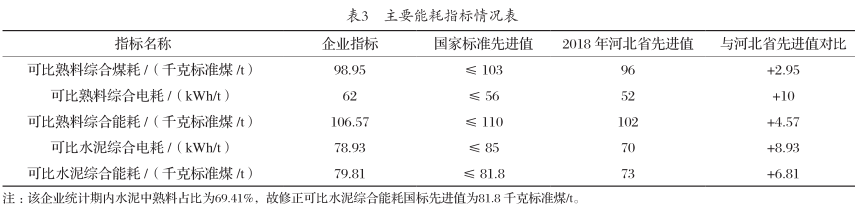 由表3可以看出,该企业能耗指标除可比熟料综合电耗外其他指标均达到《水泥单位产品能源消耗限额》(GB16780—2012)标准先进值要求,但与省内同行先进值相比存在着较大的差距。主要差距是电耗偏高。